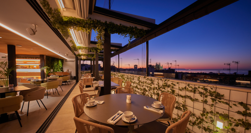 Nakar Hotel is a lifestyle design hotel located in the heart of Palma de Mallorca. Designed for the modern traveler, it combines style, technology, and comfort. It features 56 spacious and bright rooms equipped with smart TVs, high-speed Wi-Fi, ambient lighting, and some with private jacuzzis. Its rooftop, one of the most popular in the city, offers an infinity pool with views of the cathedral and the bay, live music, and exclusive cocktails. The CUIT restaurant, led by chef Miquel Calent, stands out for its signature Mediterranean cuisine with local products. The hotel also has a spa with an indoor pool, sauna, hammam, and relaxing treatments. In 2025, Nakar Hub will open—a multifunctional space with conference rooms, coworking areas, and a gym, ideal for both work and leisure.
