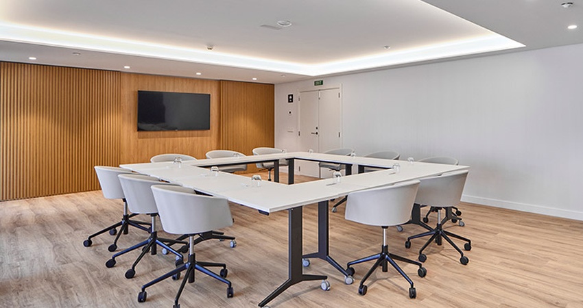 It has two modern conference rooms—Sala Cabrera and Sala Faro—perfect for meetings and events. Its facilities include outdoor and indoor pools, a spa with a wellness area, gym, room service, and parking.