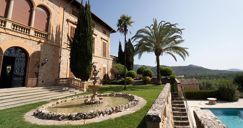 Esta majestuosa posesión mallorquina que data de 1891, se encuentra en un enclave privilegiado, pero a la vez está cerca de la ciudad de Palma, del Palacio de Congresos, del puerto, del aeropuerto y de pequeños pueblos pintorescos como Valldemossa, Deià, Soller y Esporlas.